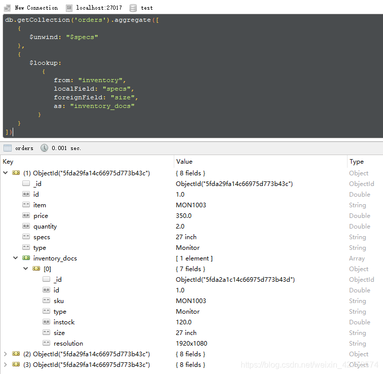下面是问题涉及到的聚合管道操作实例,可以看看