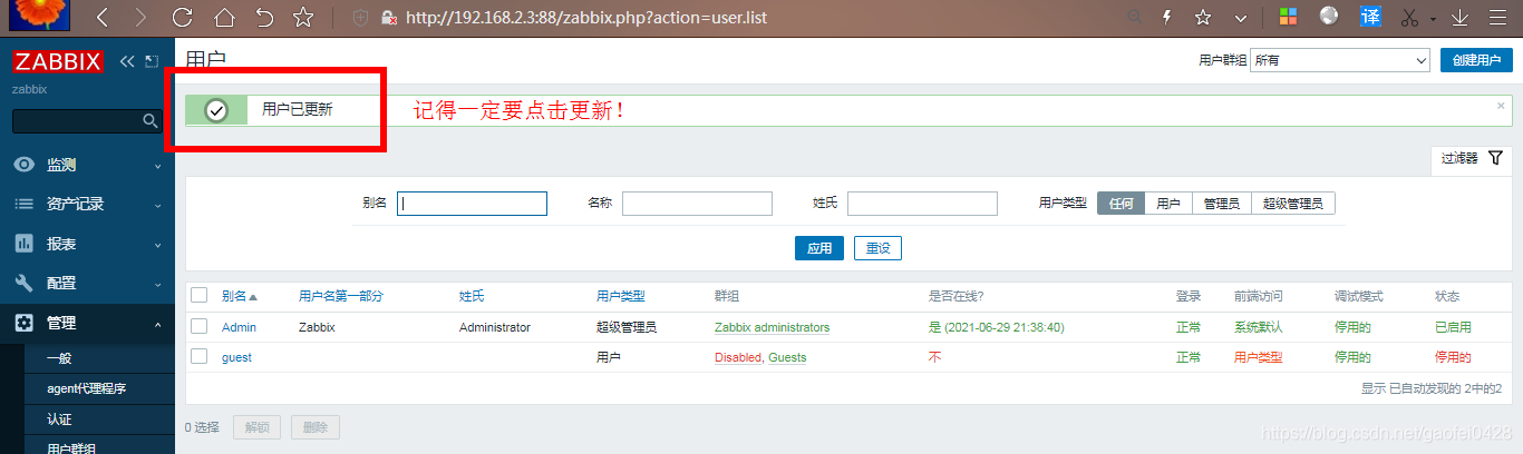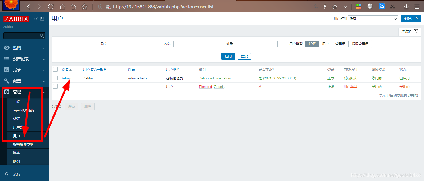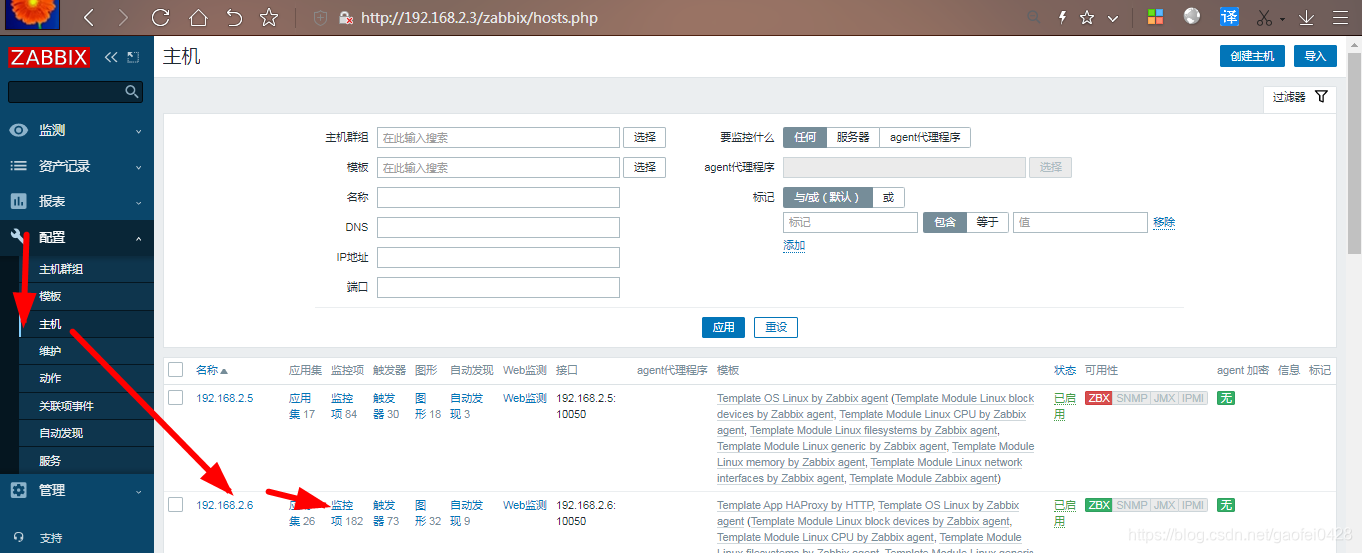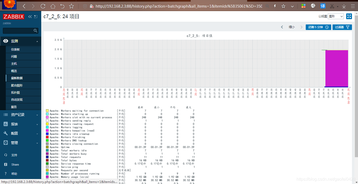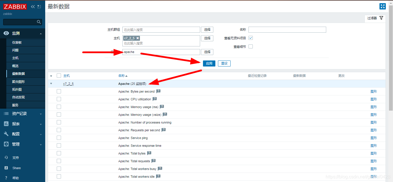 - 首先在 192.168.2.5 上 配置 Zabbix 监控 Apache 服务