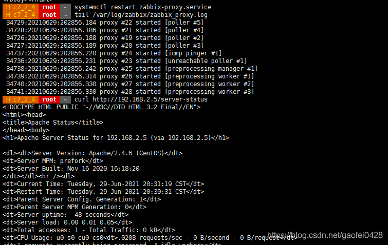 注:允许访问 status 页面的主机,在生产环境中,可以直接固定为 zabbix-server 端的 IP 地址或者 zabbix 代理地址。