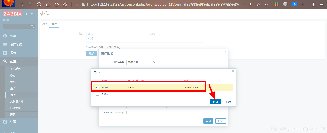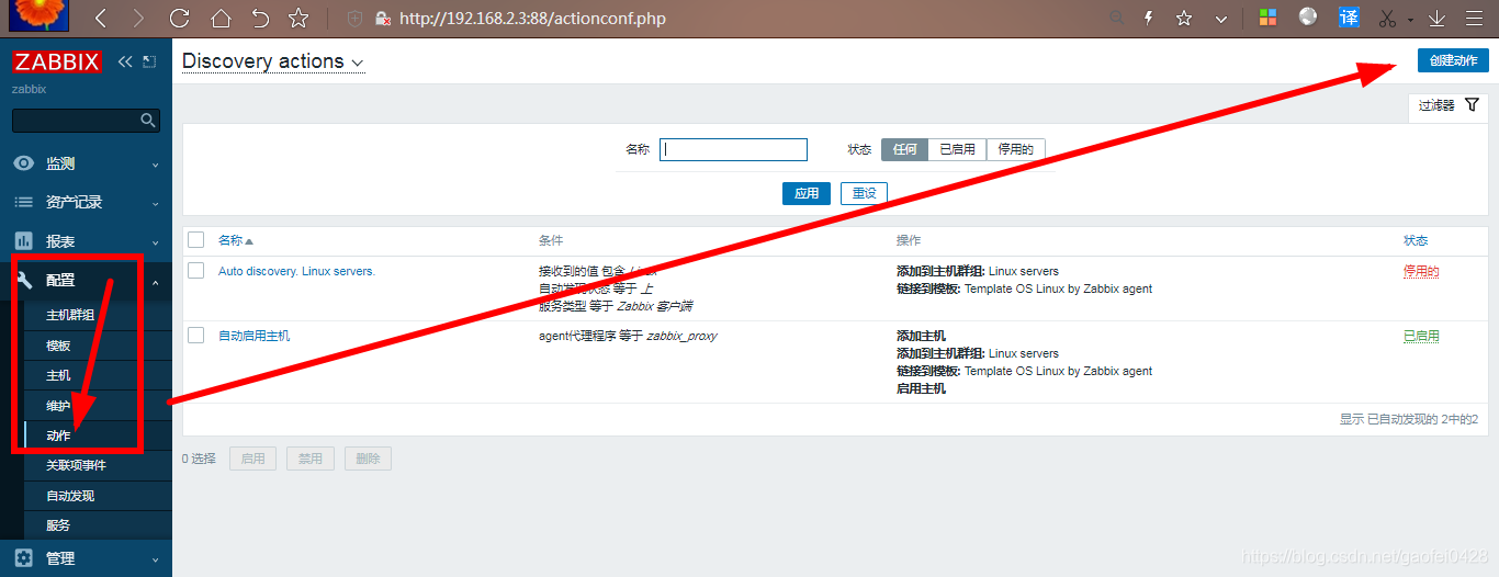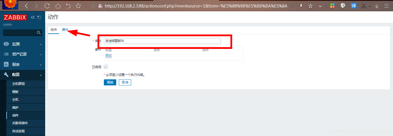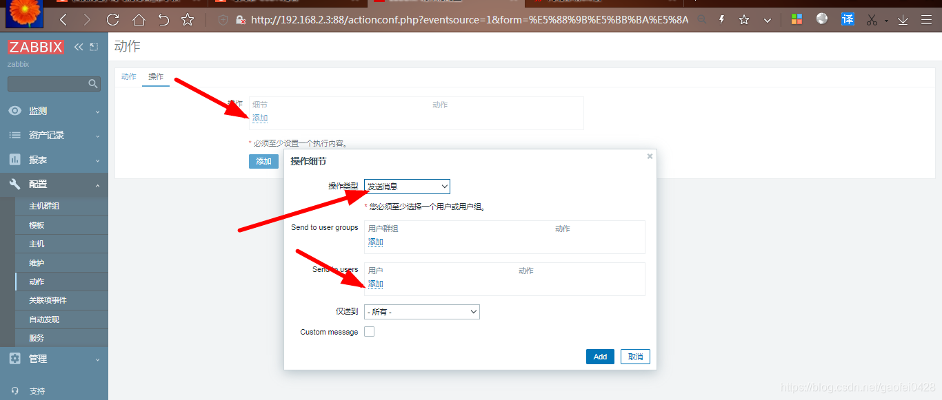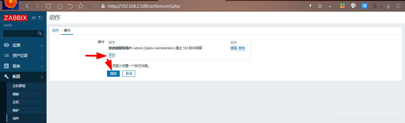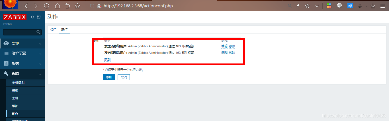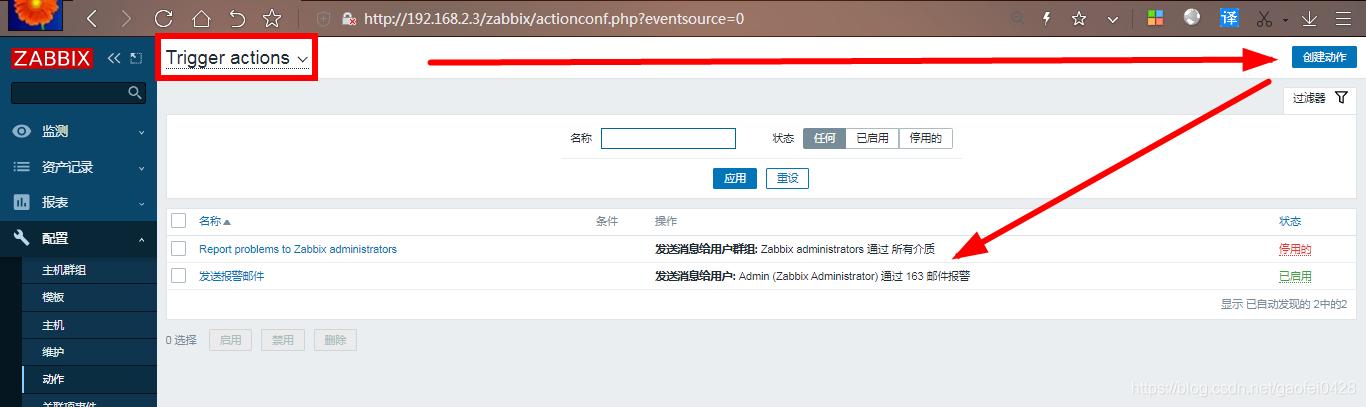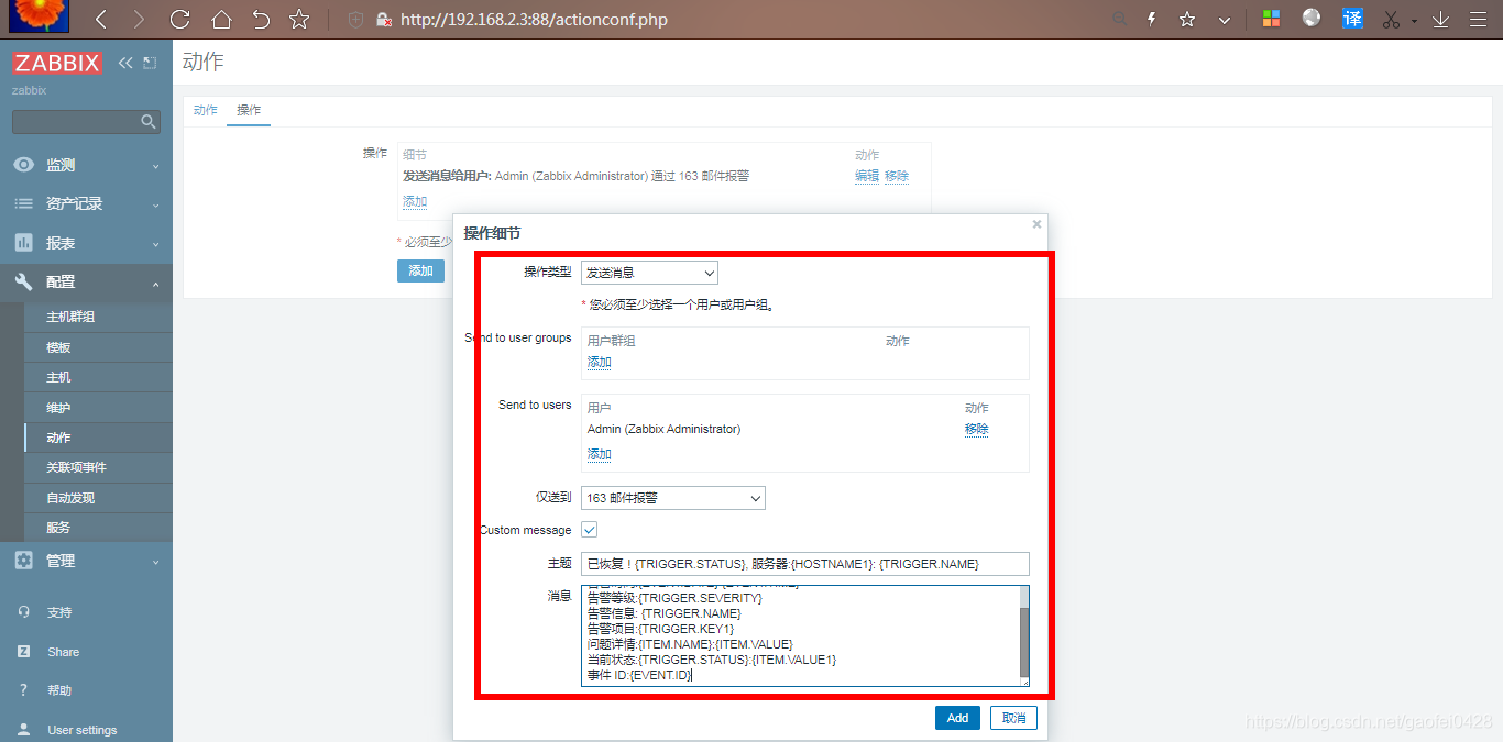 动作由触发器进行触发,例如:192.168.2.5 c7_2_5 主机宕机,监控项检测不到数值后触发器就会触发动作。