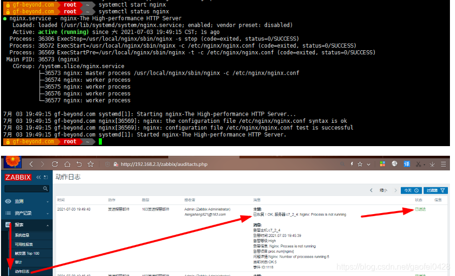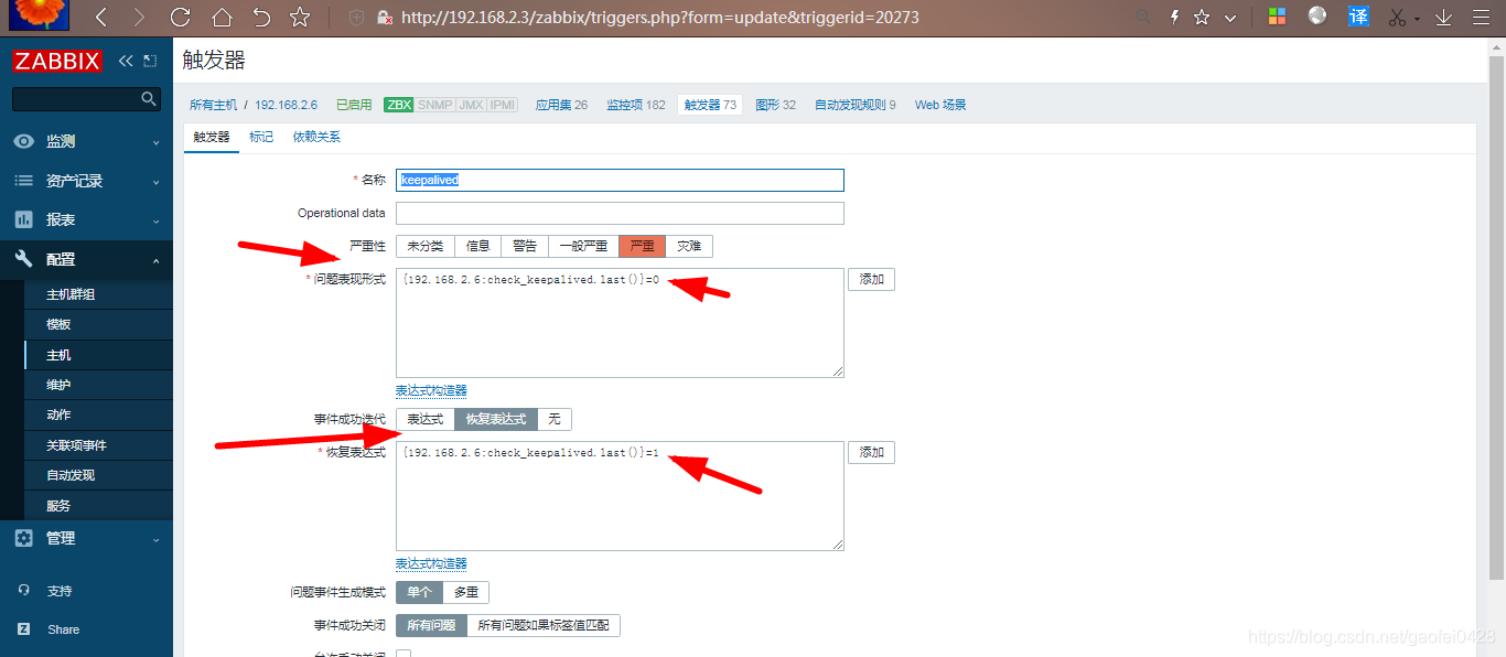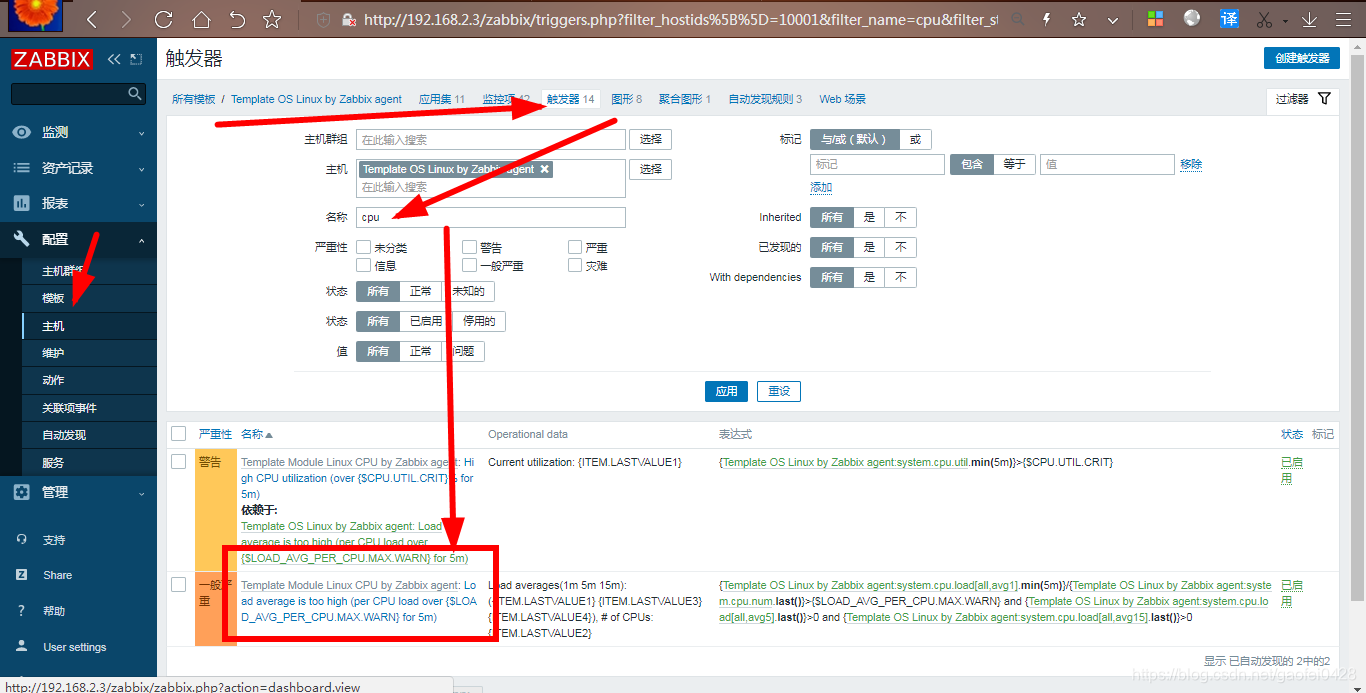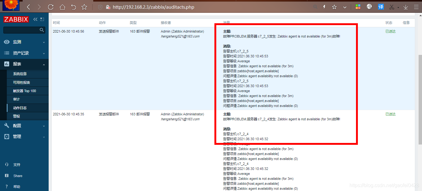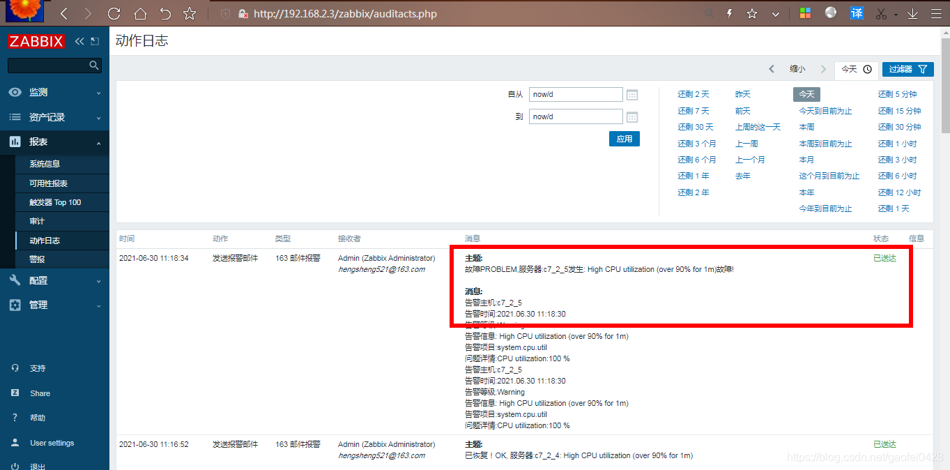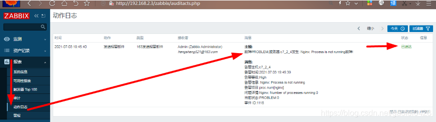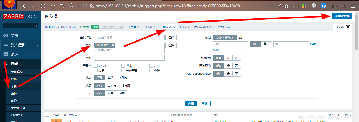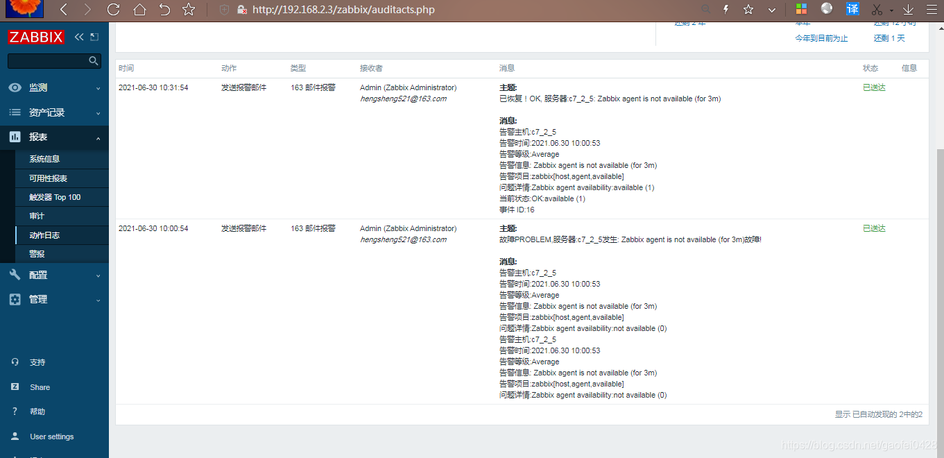 动作由触发器进行触发,例如:192.168.2.5 c7_2_5 主机宕机,监控项检测不到数值后触发器就会触发动作。