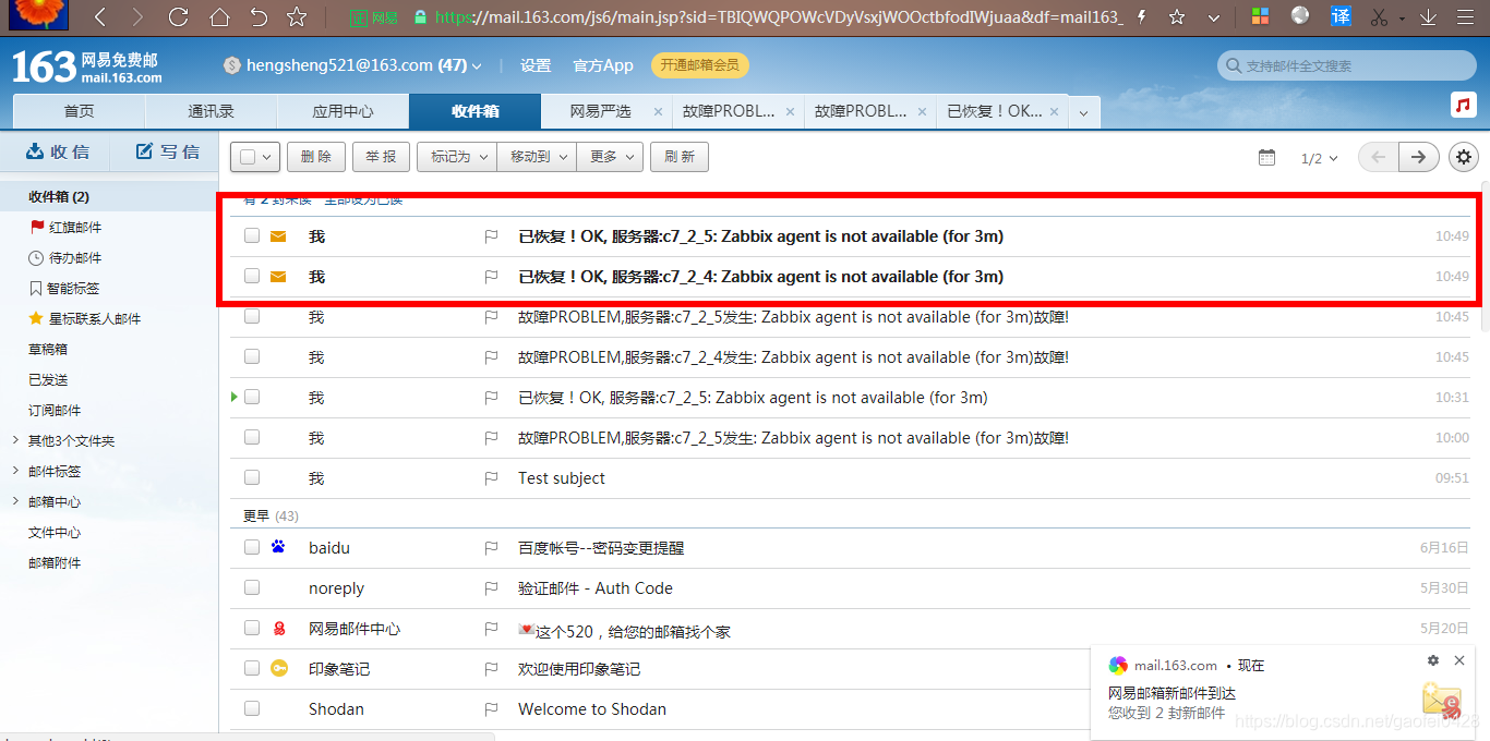 echo "zabbix test mail" |mailx -s "zabbix" hengsheng521@163.com