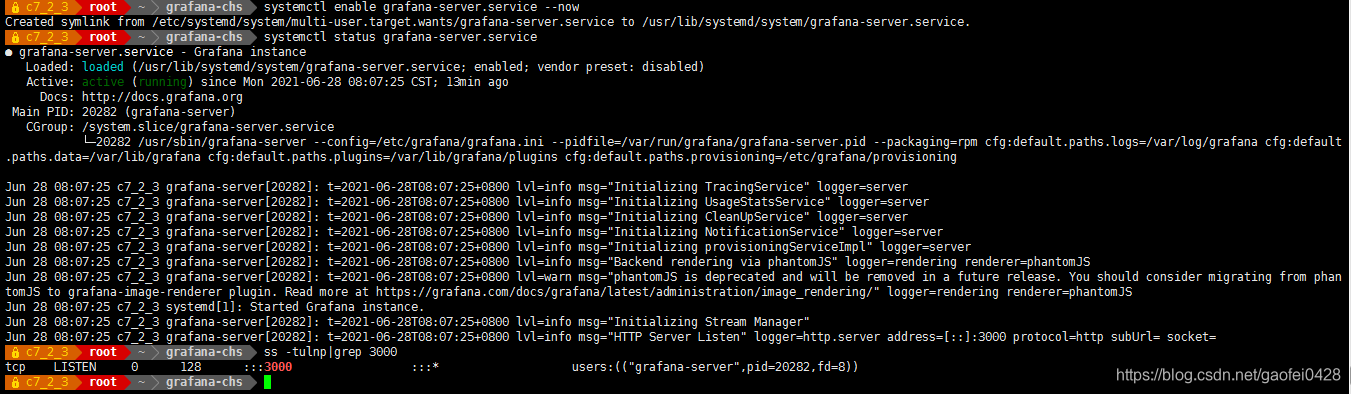 - systemctl enable grafana-server.service --now