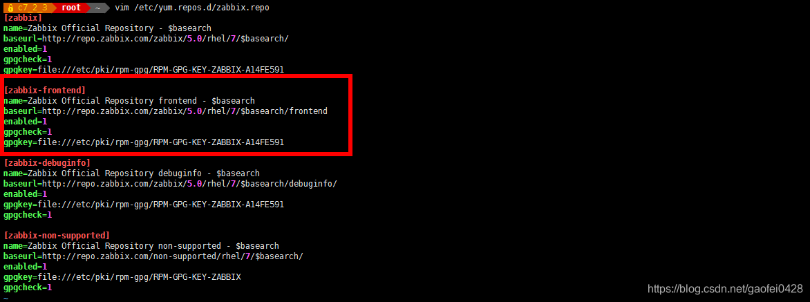 - rpm -Uvh https://repo.zabbix.com/zabbix/5.0/rhel/7/x86_64/zabbix-release-5.0-1.el7.noarch.rpm