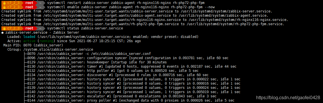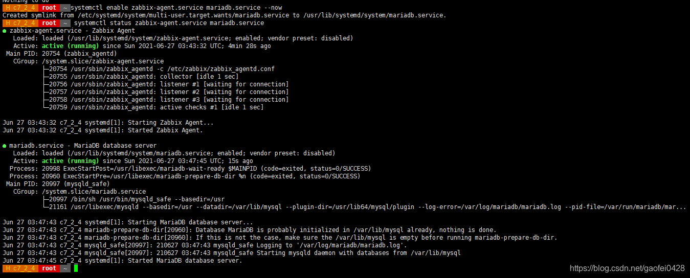 - systemctl enable zabbix-get zabbix-agent.service mariadb.service --now && systemctl status zabbix-agent mariadb