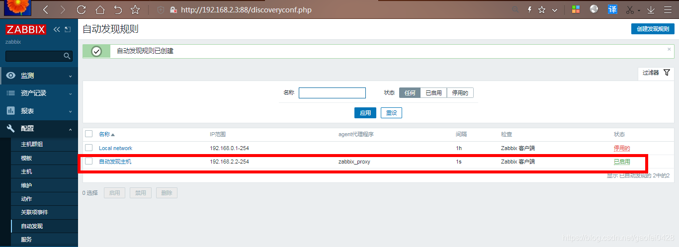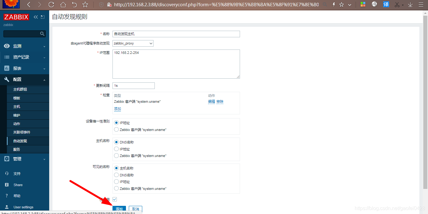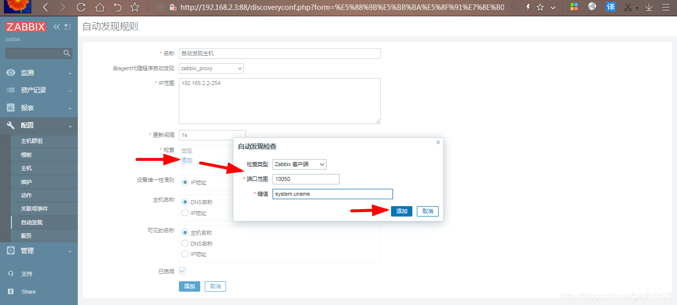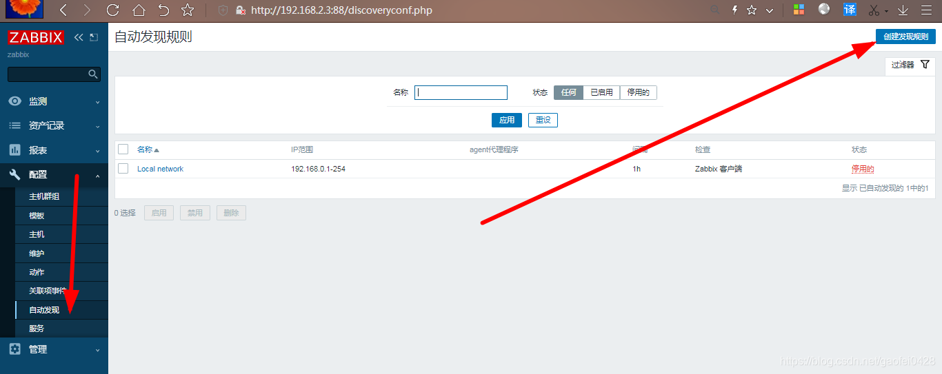 - 配置 ----> 自动发现 ----> 创建发现规则