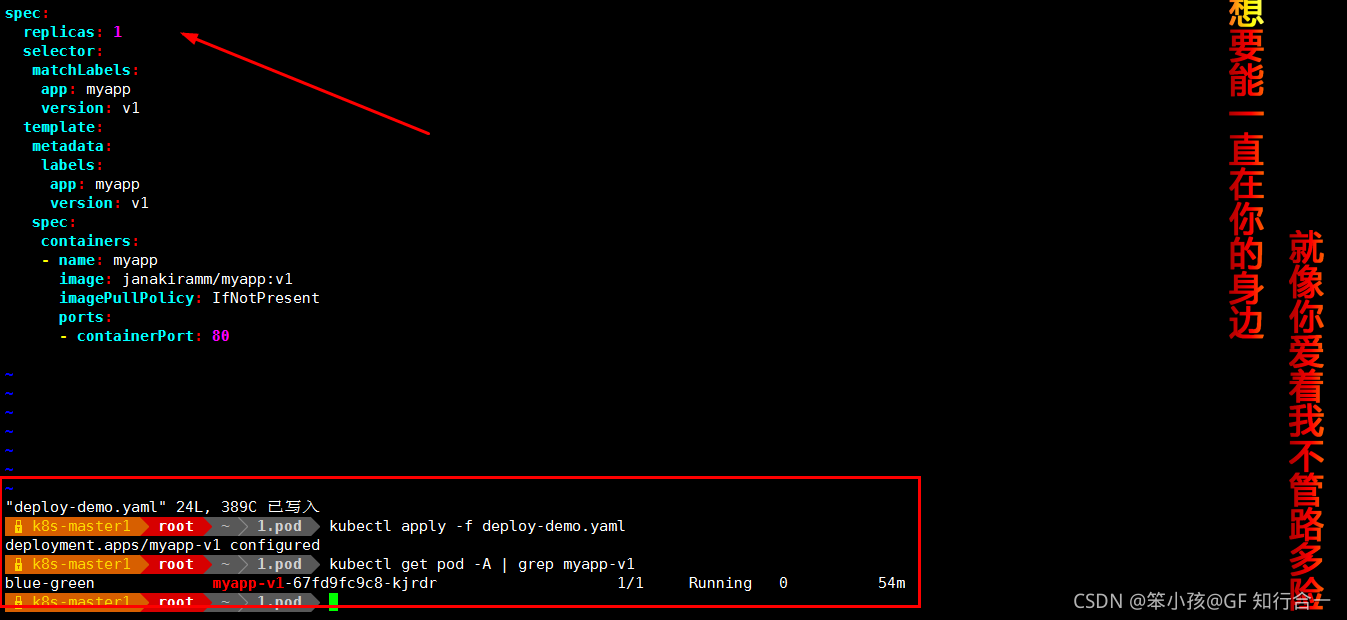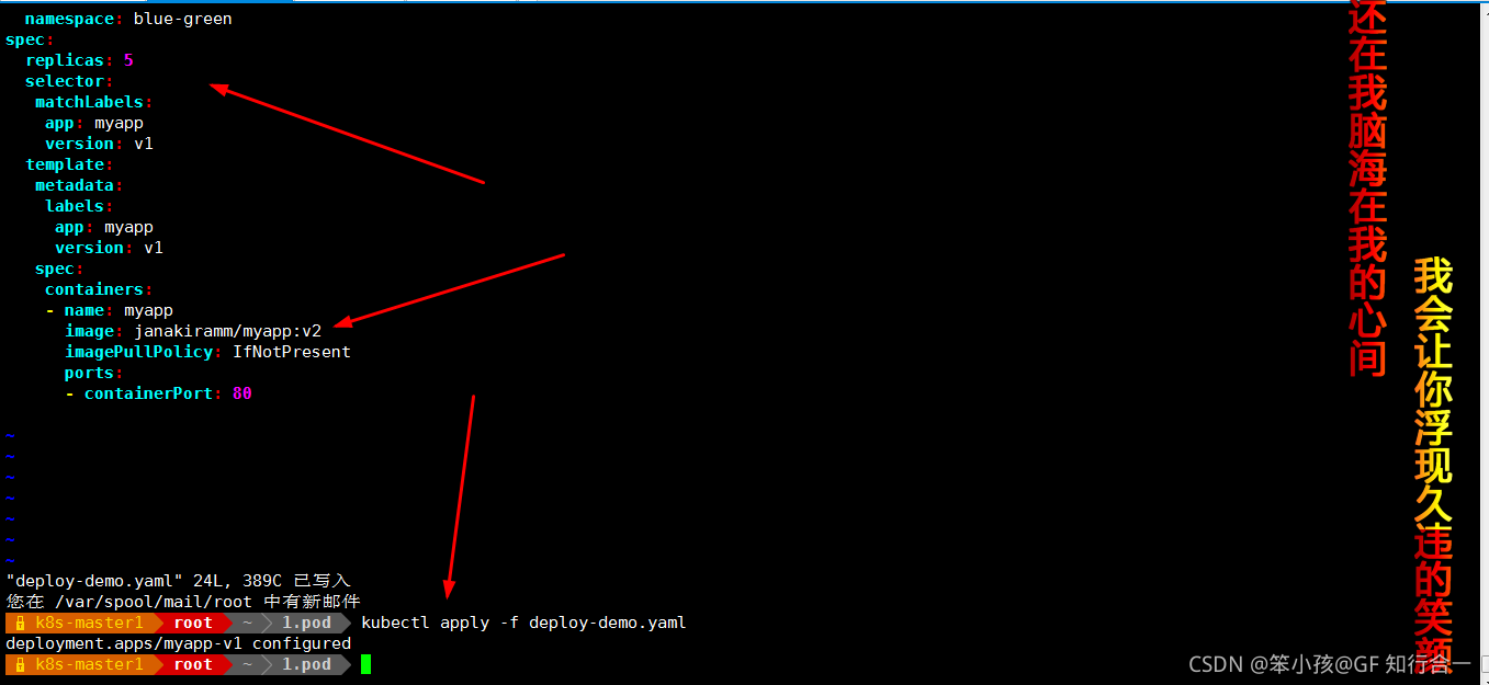 把 image: janakiramm/myapp:v1 变成 image: janakiramm/myapp:v2
