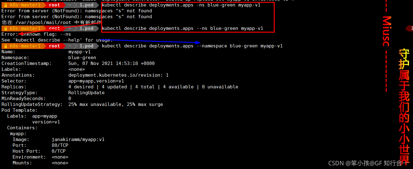 - 上面可以看到镜像变成了 ikubernetes/myapp:v2,说明滚动升级成功了