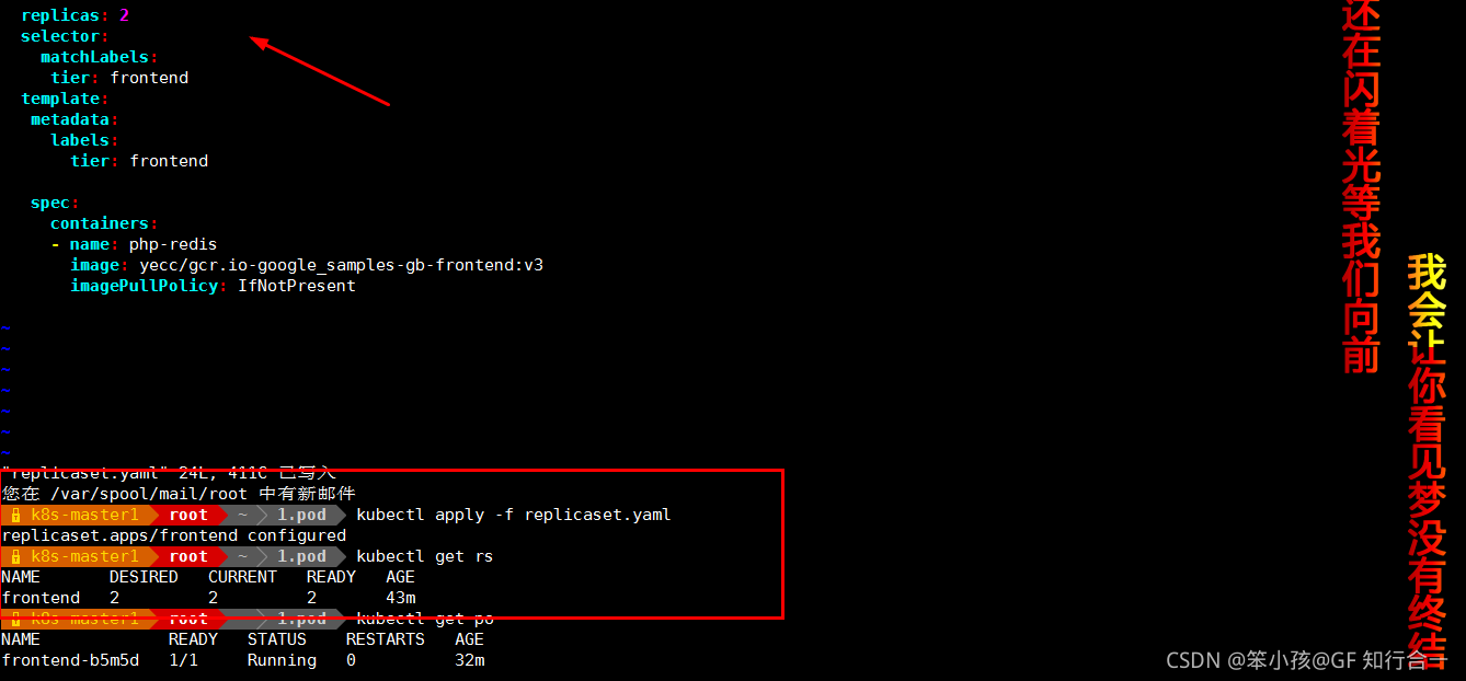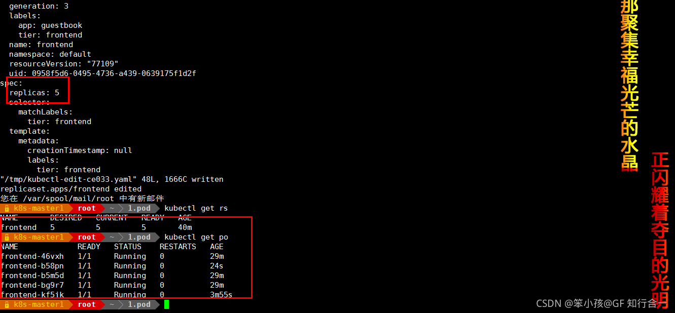 kubectl edit rs frontend #这个是我们把请求提交给了 apiserver,实时修改