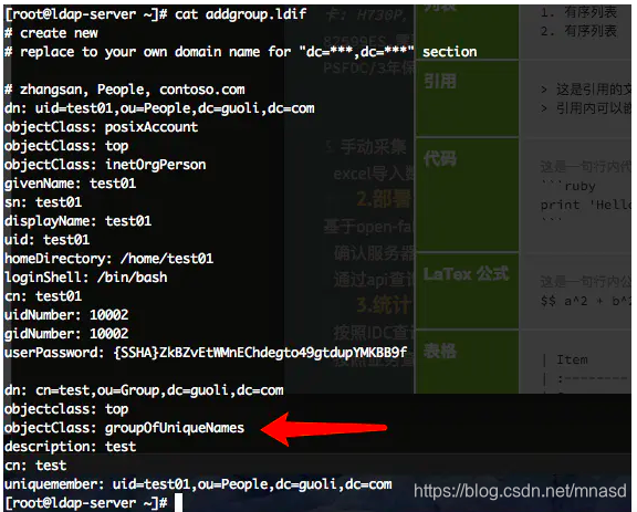 dn: cn=test,ou=Group,dc=guoli,dc=com