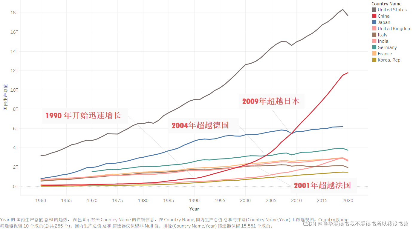 可以看出,中国从1990年开始启动经济加速,直到2009年超过日本,成为世界第二经济大国,但从2020年开始经济发展有所减缓。事实上,这正是受到我国从高数量到高质量的转型政策影响。