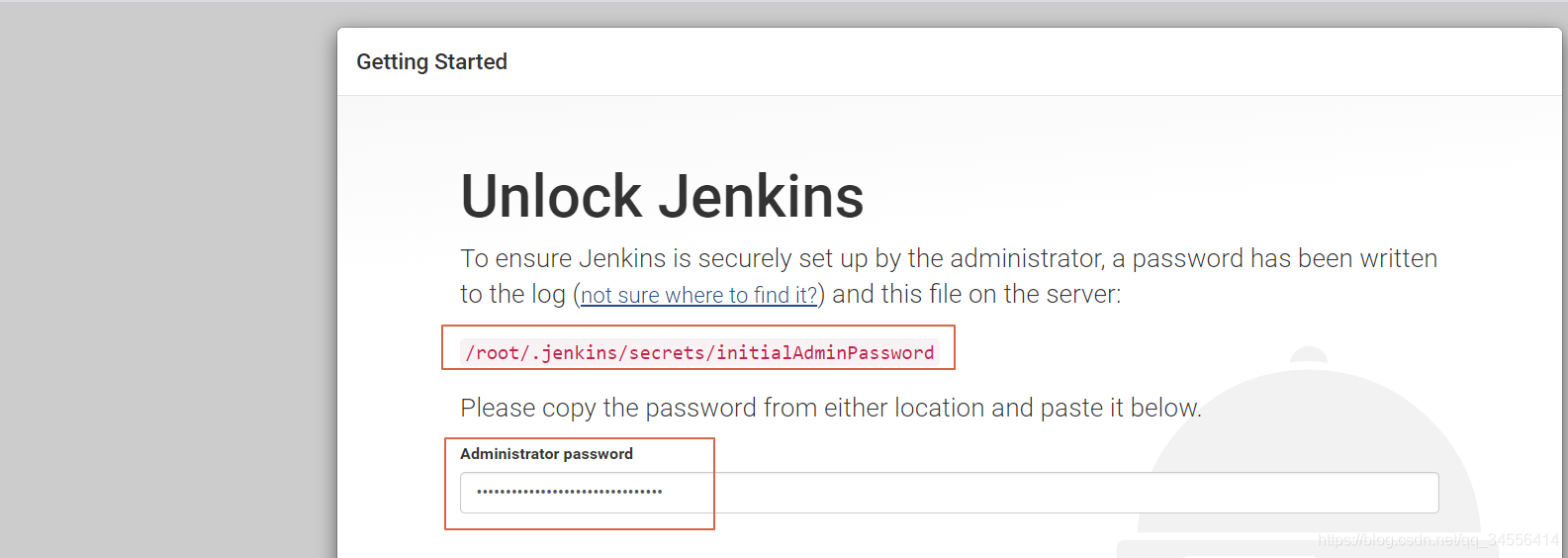[root@localhost ~]# cat /root/.jenkins/secrets/initialAdminPassword