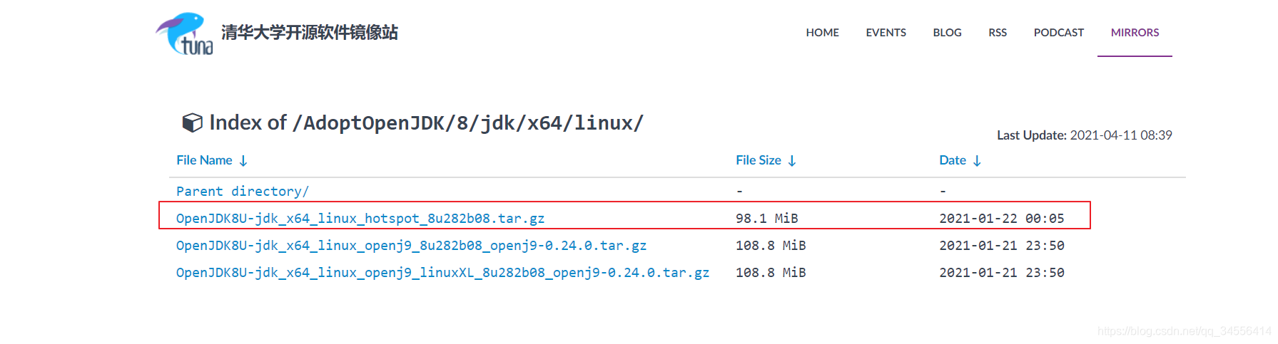 https://mirrors.tuna.tsinghua.edu.cn/AdoptOpenJDK/8/jdk/x64/linux/