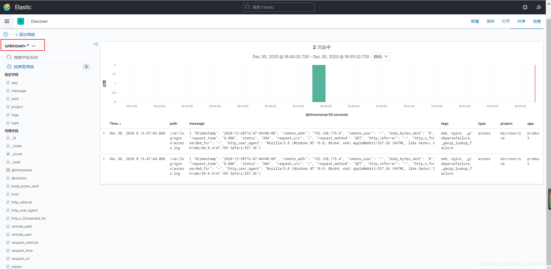 可以看到根据不同的日志来源创建了不同的索引,不同的索引里面存放着不同的日志信息