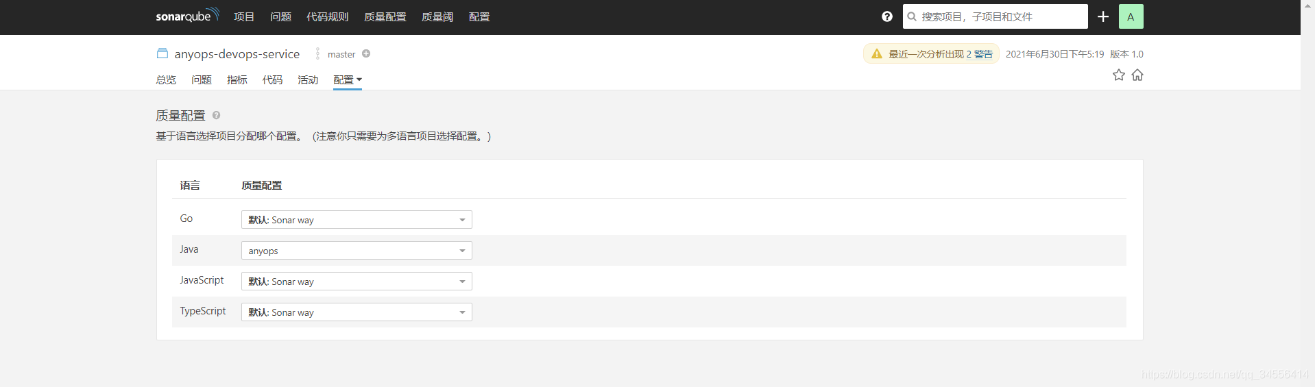 sonar.ConfigQualityProfiles(projectName,"java",qpname)