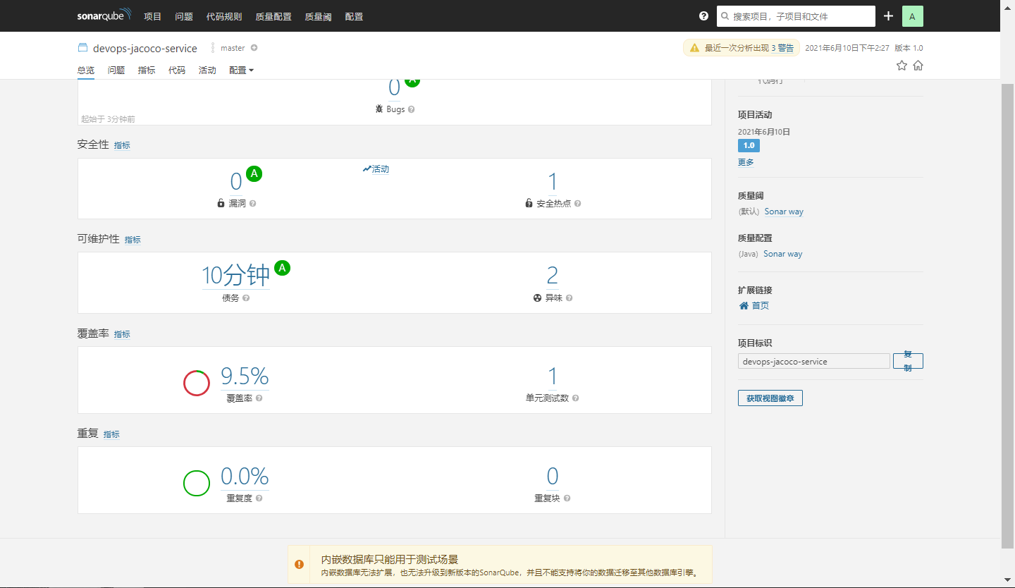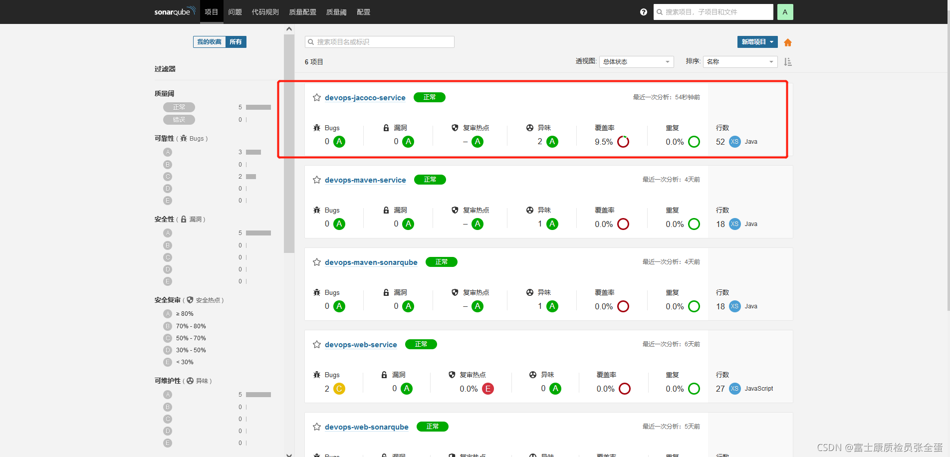 这个覆盖率不是sonar直接给我们生成的,而是根据项目覆盖率工具,自己生成报告,比如jacoco。