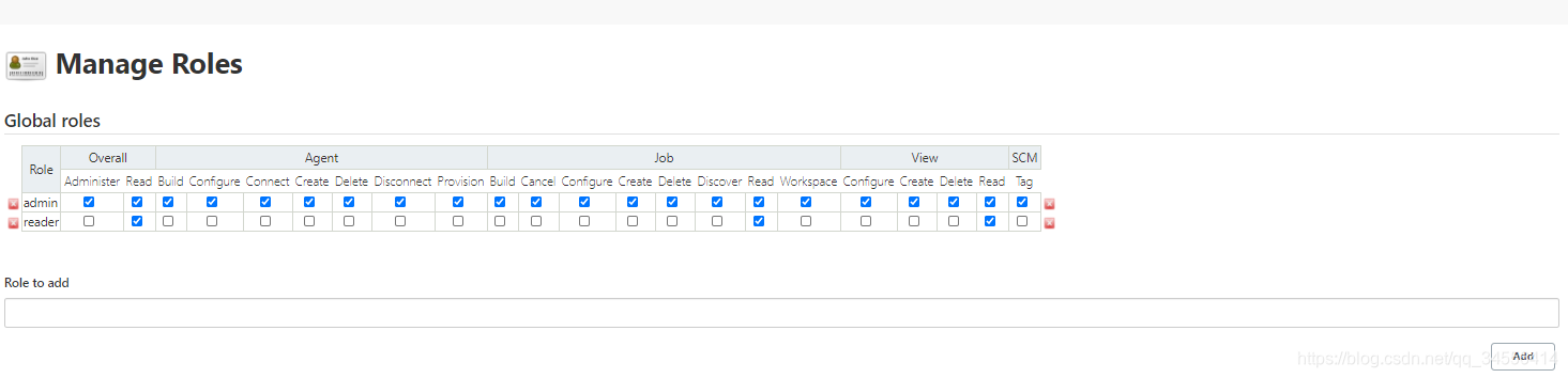 - Global roles:添加用户和用户组,分配某个用户属于哪个用户组。