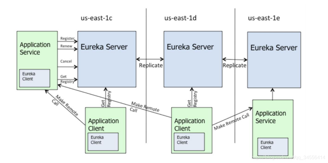 - Replicate(集群中数据同步)∶ eureka 集群中的数据复制与同步。