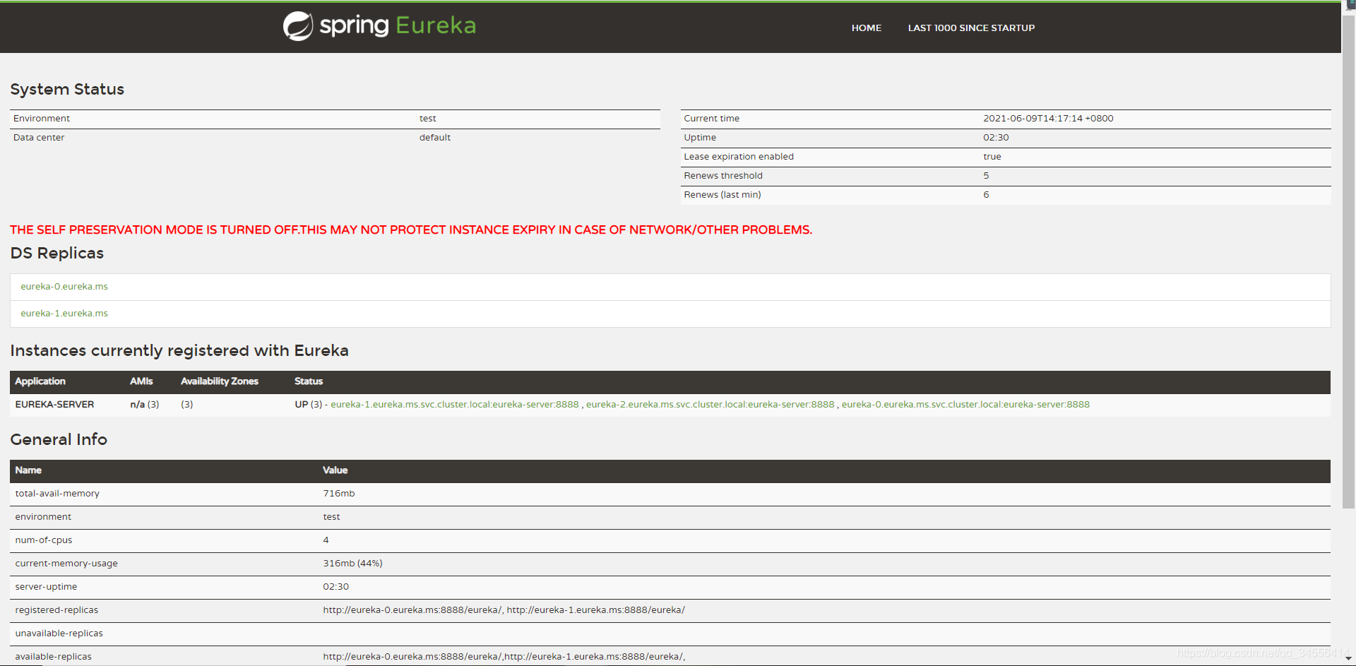 Eureka Server 提供服务注册中心,各个节点启动后,会将自己的 IP 和端口等网络信息注册到 Eureka Server 中,这样 Eureka Server 服务注册表中将会存储所有可用服务节点的信息,在Eureka 的图形化界面可以看到所有注册的节点信息。