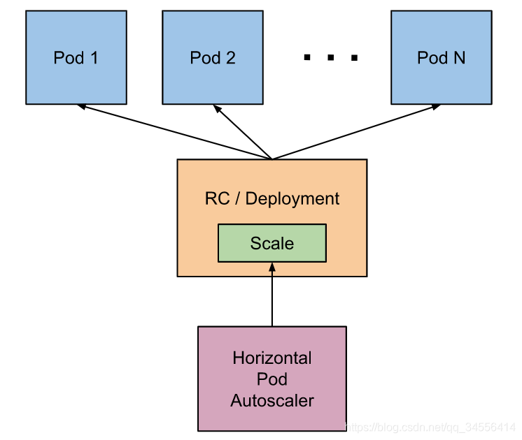 在前面的学习中我们使用用一个 kubectl scale 命令可以来实现 Pod 的扩缩容功能,但是这个毕竟是完全手动操作的,要应对线上的各种复杂情况,我们需要能够做到自动化去感知业务,来自动进行扩缩容。为此,Kubernetes 也为我们提供了这样的一个资源对象:Horizontal Pod Autoscaling(Pod 水平自动伸缩),简称HPA,HPA 通过监控分析一些控制器控制的所有 Pod 的负载变化情况来确定是否需要调整 Pod 的副本数量,这是 HPA 最基本的原理: