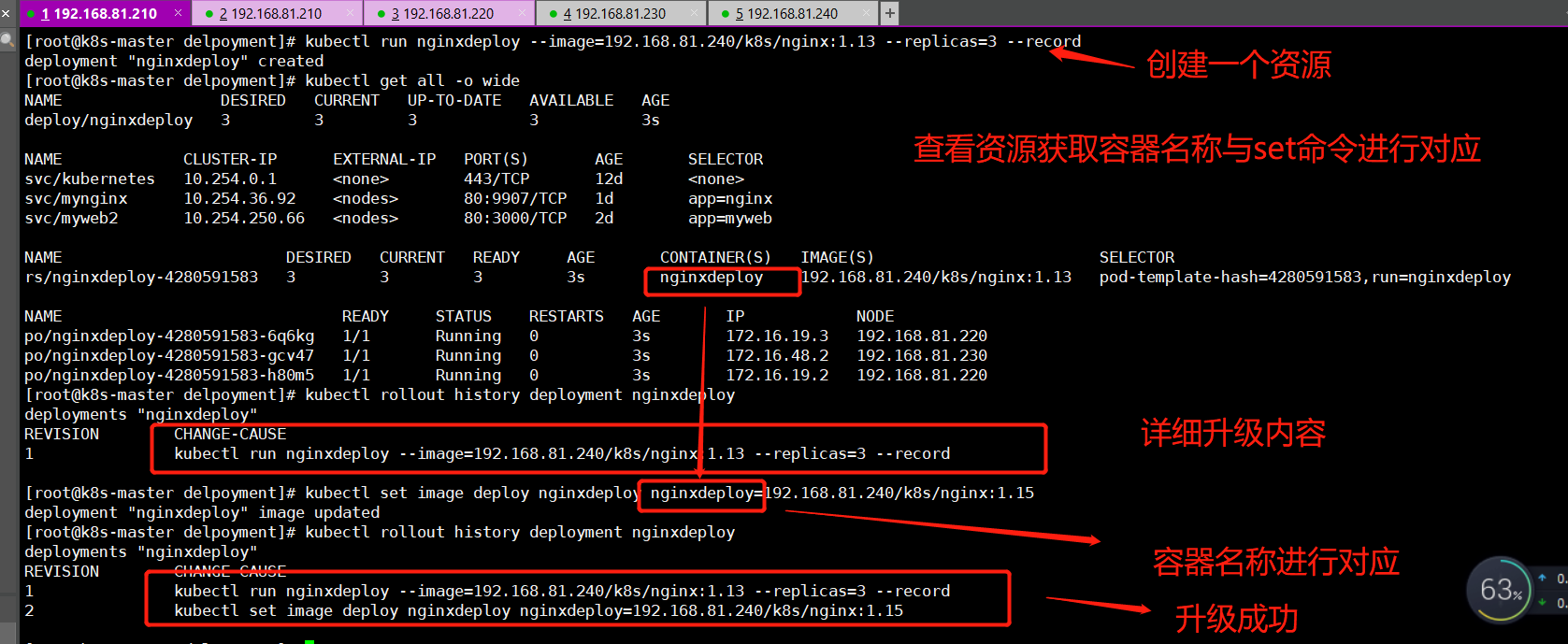 2 kubectl set image deploy nginxdeploy nginxdeploy=192.168.81.240/k8s/nginx:1.15