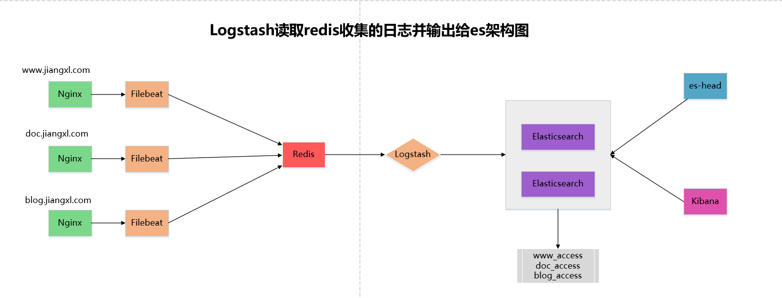 最接近终极的架构图就是我们从redis中读取收集来的日志最后由logstash存储到es库,但是这个架构有个缺陷假如redis挂掉,我们就无法收集日志了
