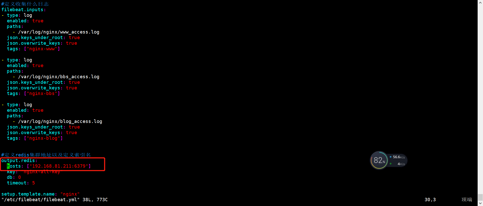 2.6.配置filebeat将日志存储到高可用的redis集群