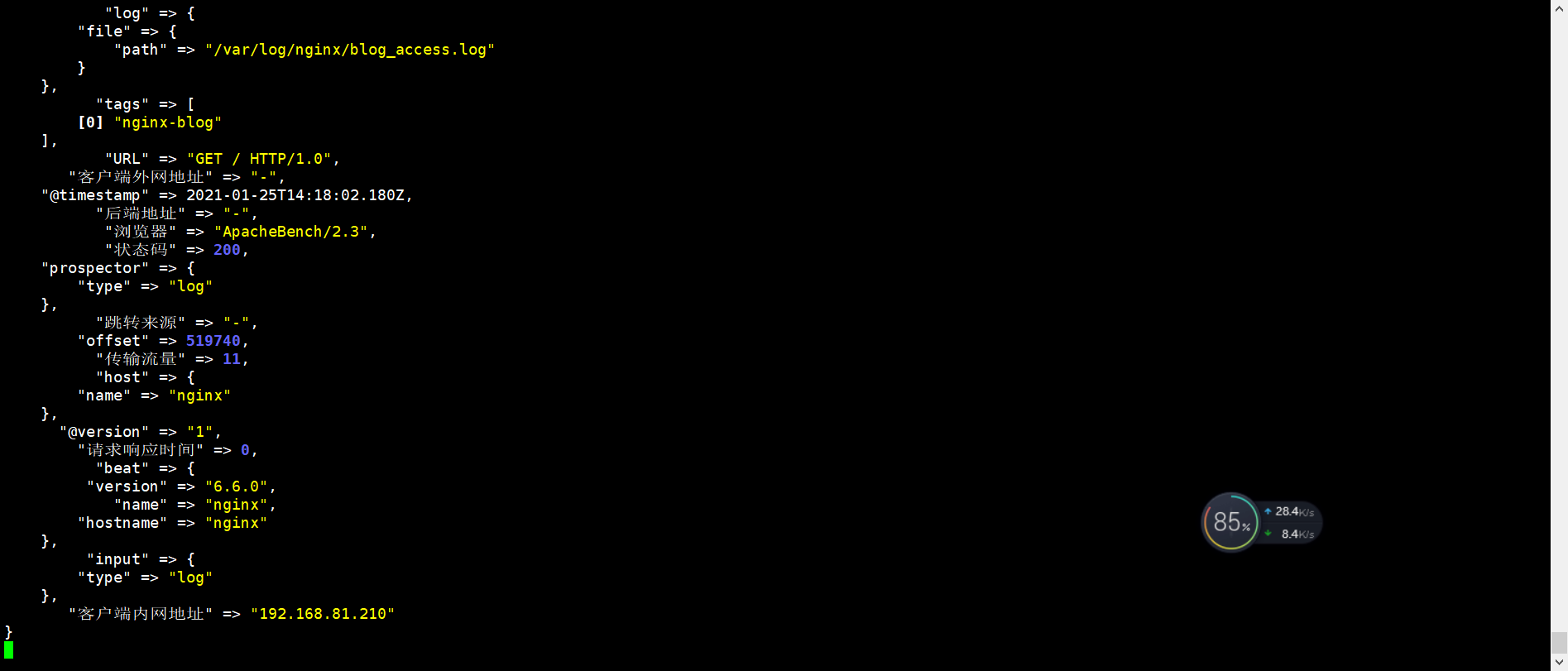 [root@elasticsearch ~]# redis-cli -h 192.168.81.211 -p 6378 192.168.81.211:6378> keys *1) "redis01"192.168.81.211:6378> keys *1) "redis01"192.168.81.211:6378> keys *1) "redis01"192.168.81.211:6378> 192.168.81.211:6378> 192.168.81.211:6378> 192.168.81.211:6378> keys *1) "filebeat"2) "redis02"192.168.81.211:6378>