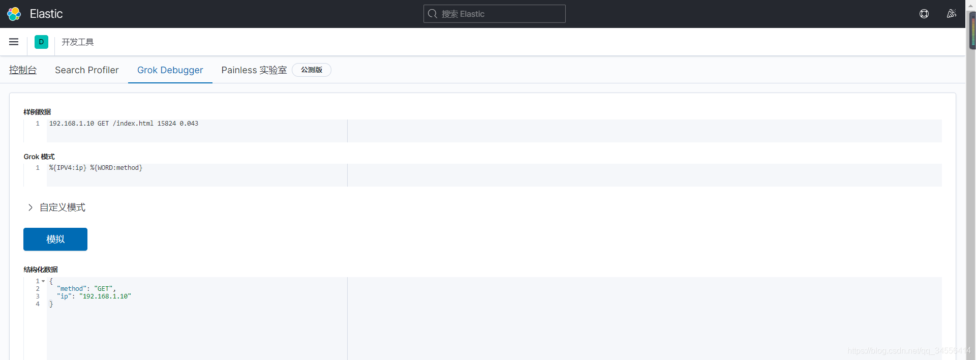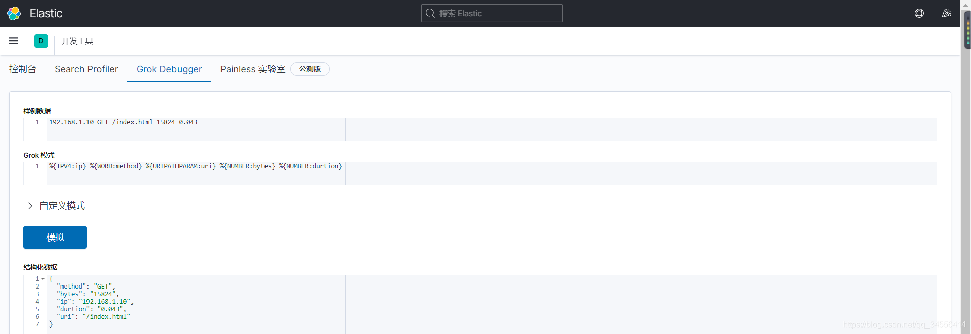 Grok插件可以支持正则,能够从非结构化的日志当中提取出关键字段,负责将非结构化数据解析为结构化的数据,logstash默认支持了很多正则