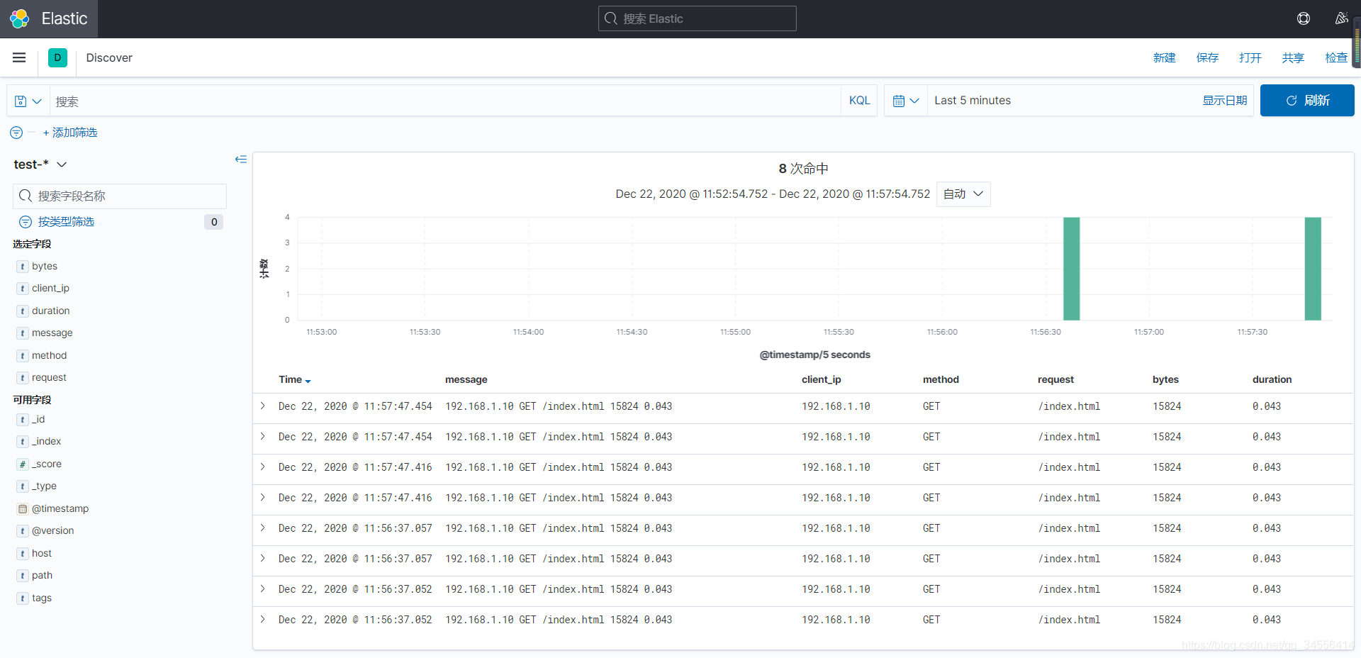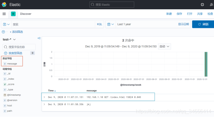 可以看到在Kibana里面meaasge还是保存了原始的字段